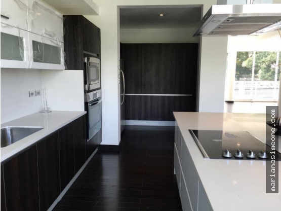 3 niveles - 3 habitaciones, la principal con vestidor amplio y baño con ducha y doble lavatorio con sobres de cuarzo - Baño secundario con ducha - Sala comedor con cocina integrada con muebles finos con sobre de cuarzo. - Incluye línea blanca marca General Electric (plantilla eléctrica, refrigerador, horno empotrado, campana de cocina) - Terraza grande que da a un jardín amplio - Baño completo en primer piso - Balcones - Cuarto de servicio con su baño - Cuarto de lavandería - Cochera para dos carros